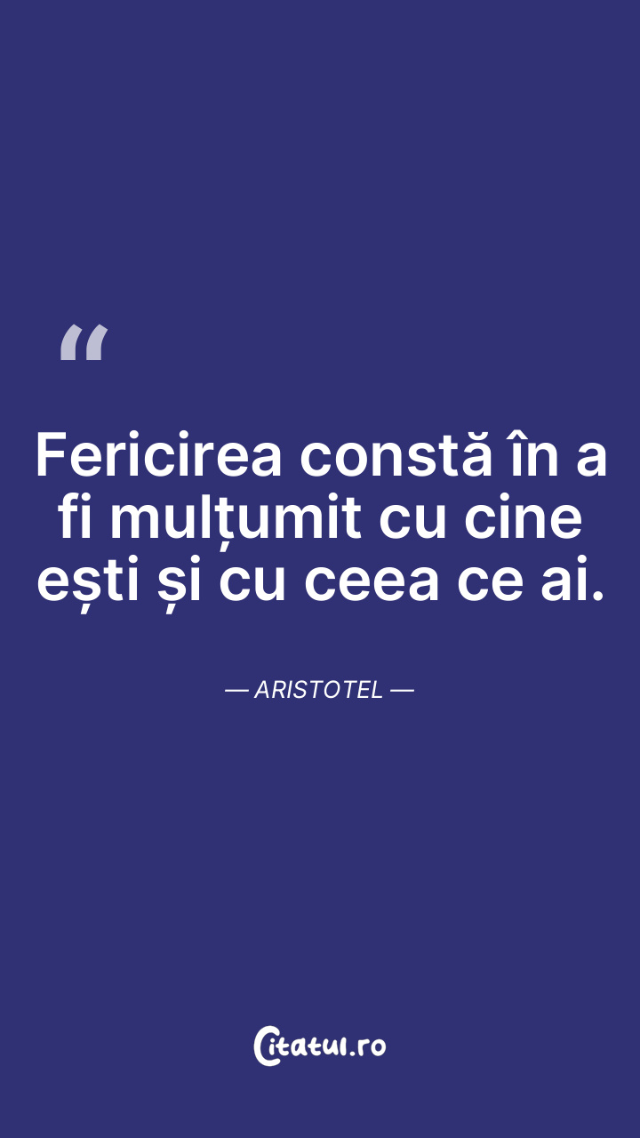 Fericirea constă în a fi mulțumit cu cine eșt ... Citește tot citatul >