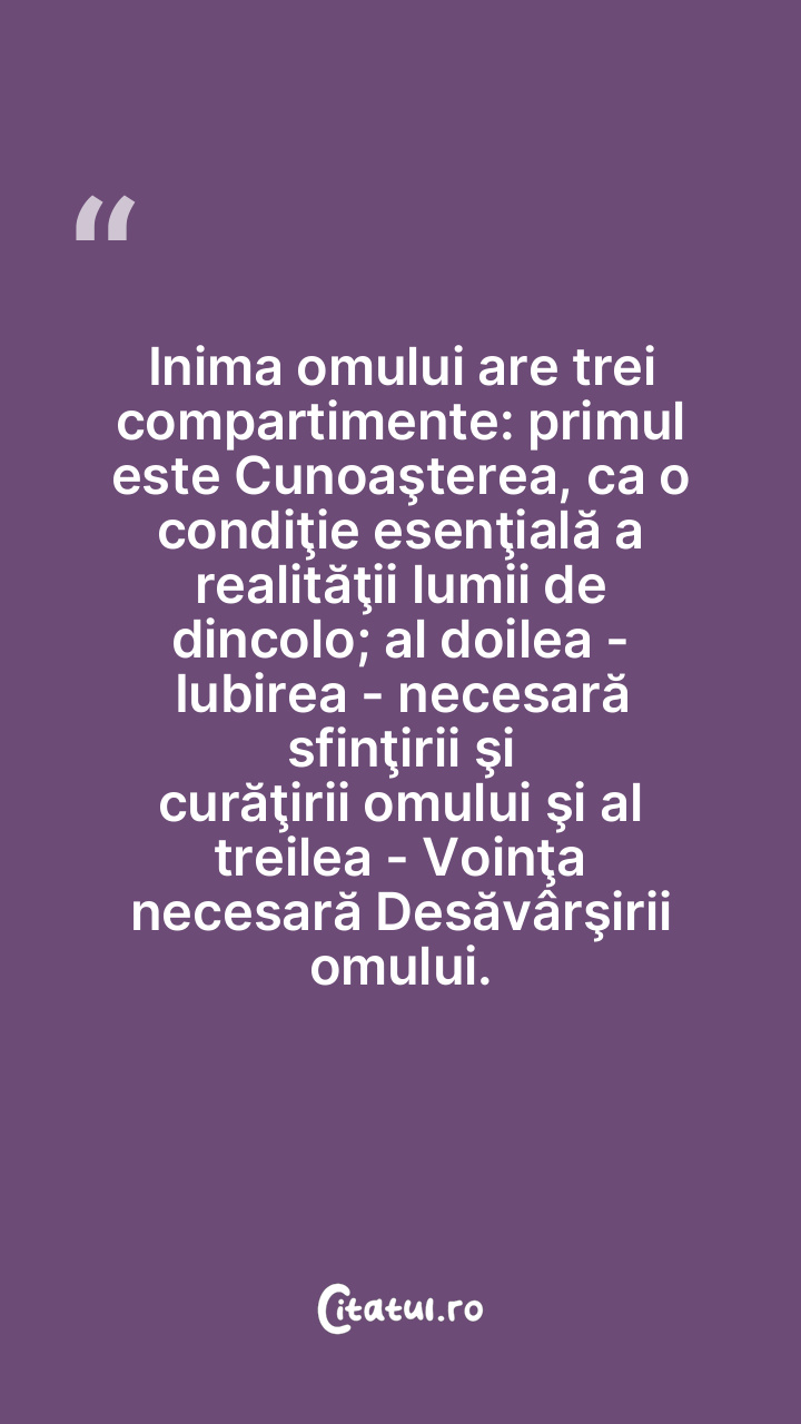 Inima omului are trei compartimente: primul e ... Citește tot citatul >