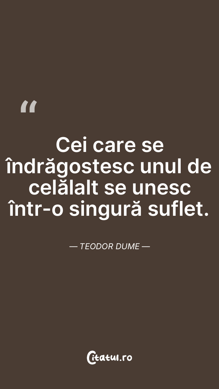 O singură iubire, o inimă care bate împreună, ... Citește tot citatul >