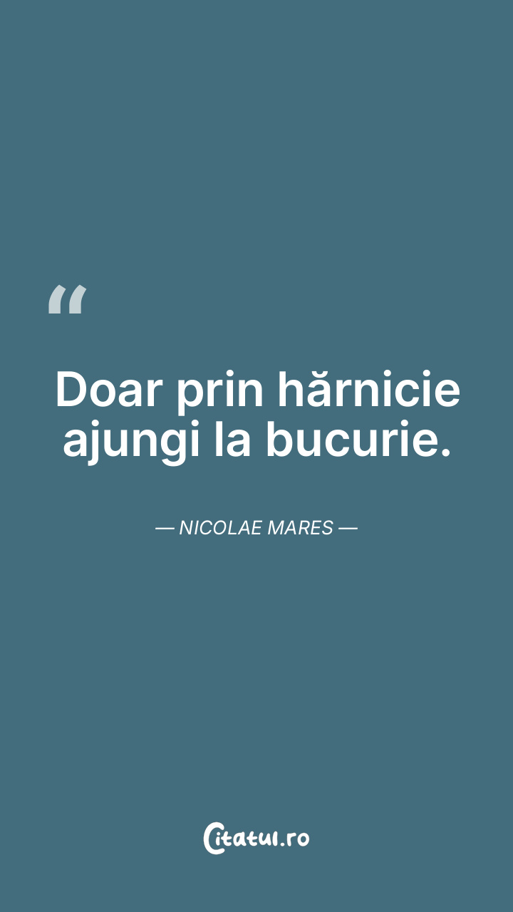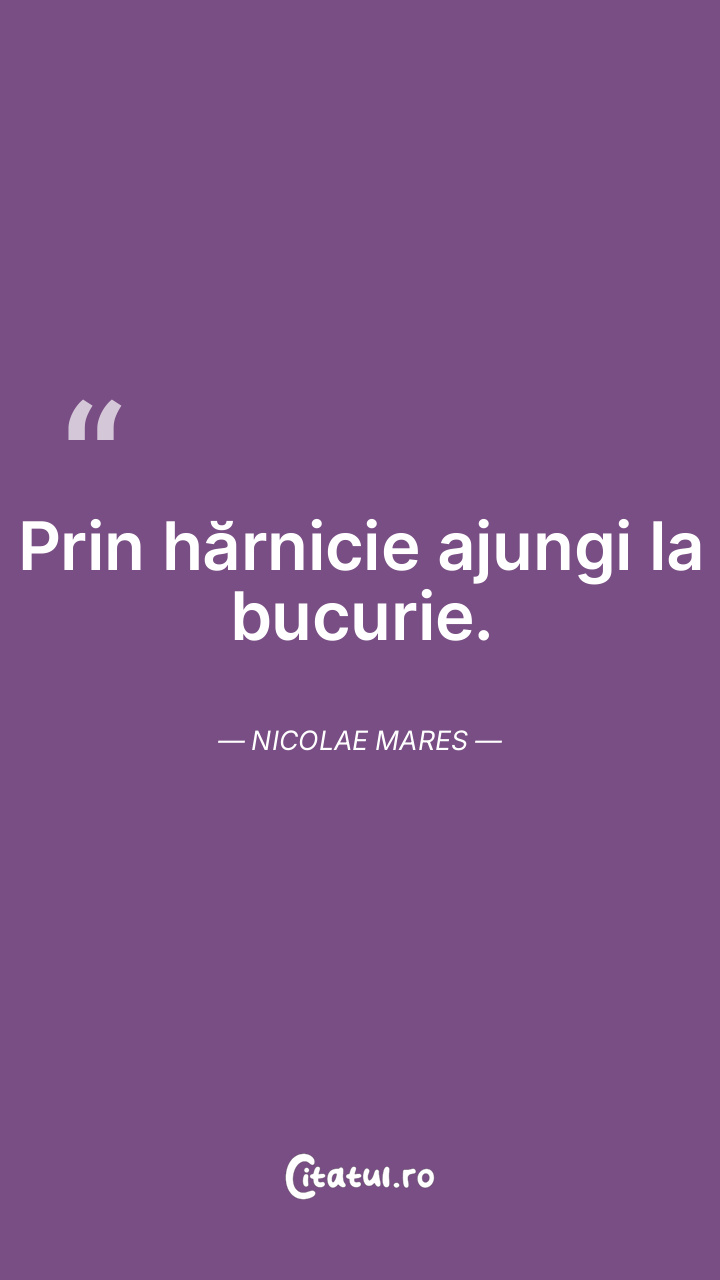 Prin hărnicie ajungi la bucurie. Nicolae Mare ... Citește tot citatul >