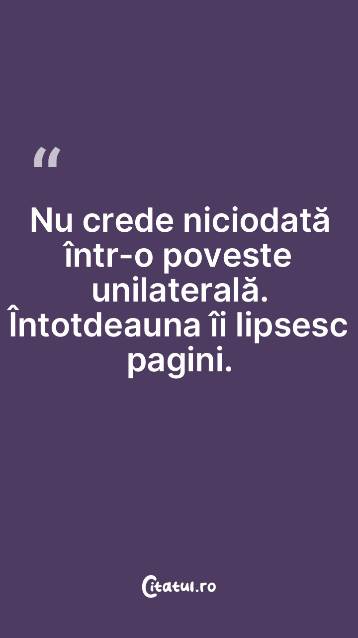 Nu crede niciodată într-o poveste unilaterală ... Citește tot citatul >