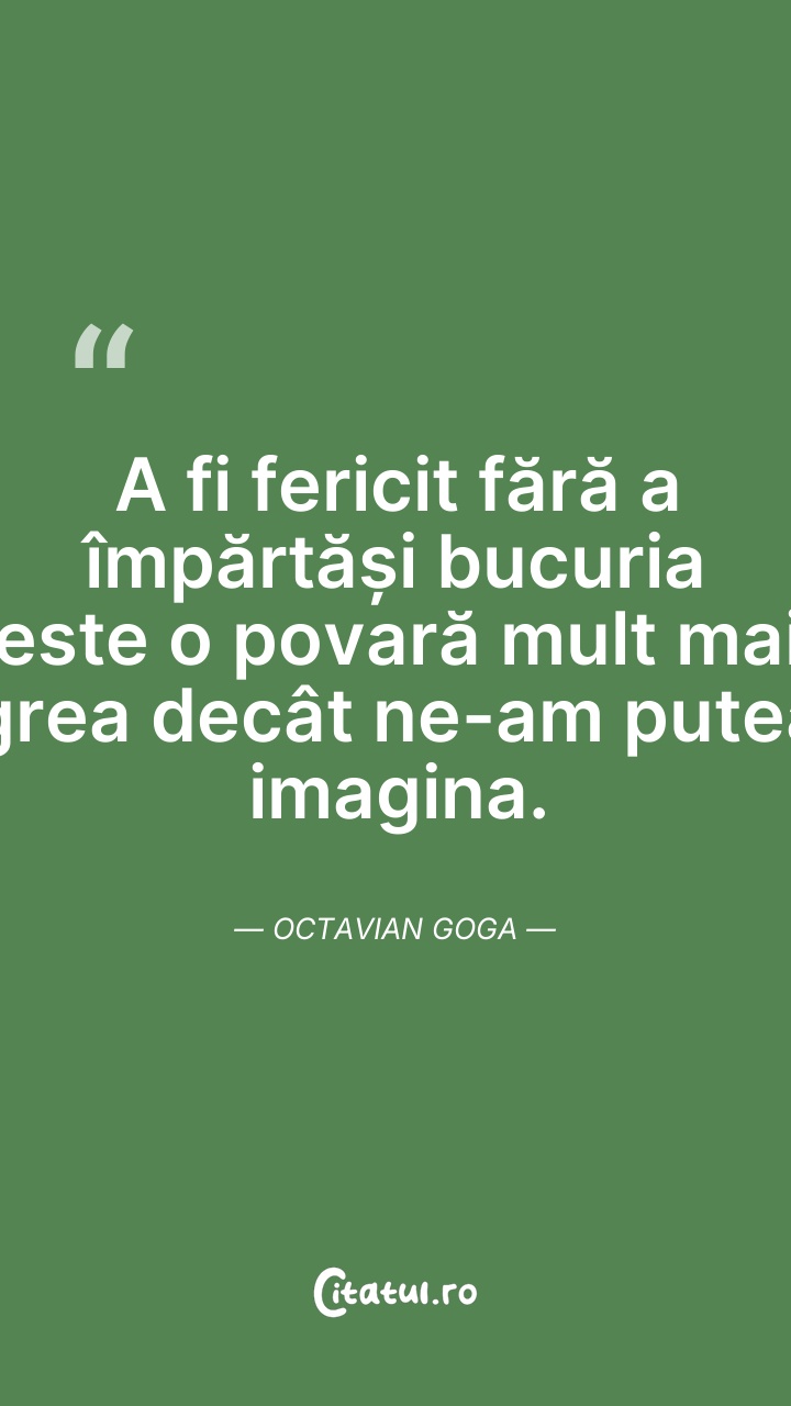 A fi fericit fără a împărtăși bucuria este o ... Citește tot citatul >