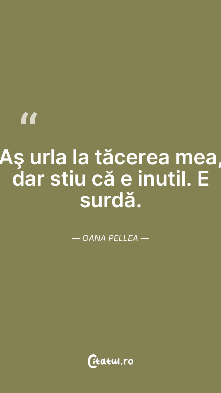 Aş urla la tăcerea mea, dar stiu că e inutil. ... Citește tot citatul >