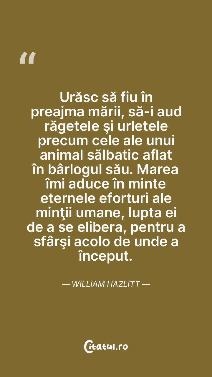 Urăsc să fiu în preajma mării, să-i aud răget ... Citește tot citatul >