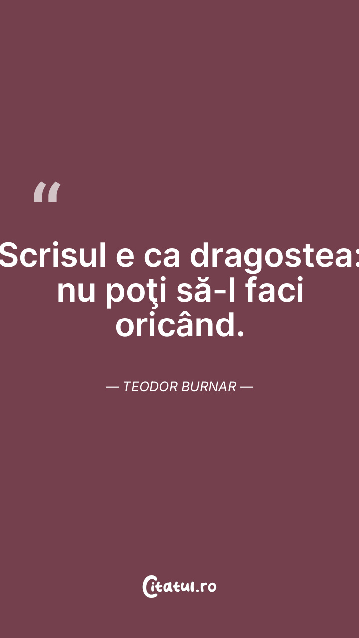 Scrisul e ca dragostea: nu poţi să-l faci ori ... Citește tot citatul >
