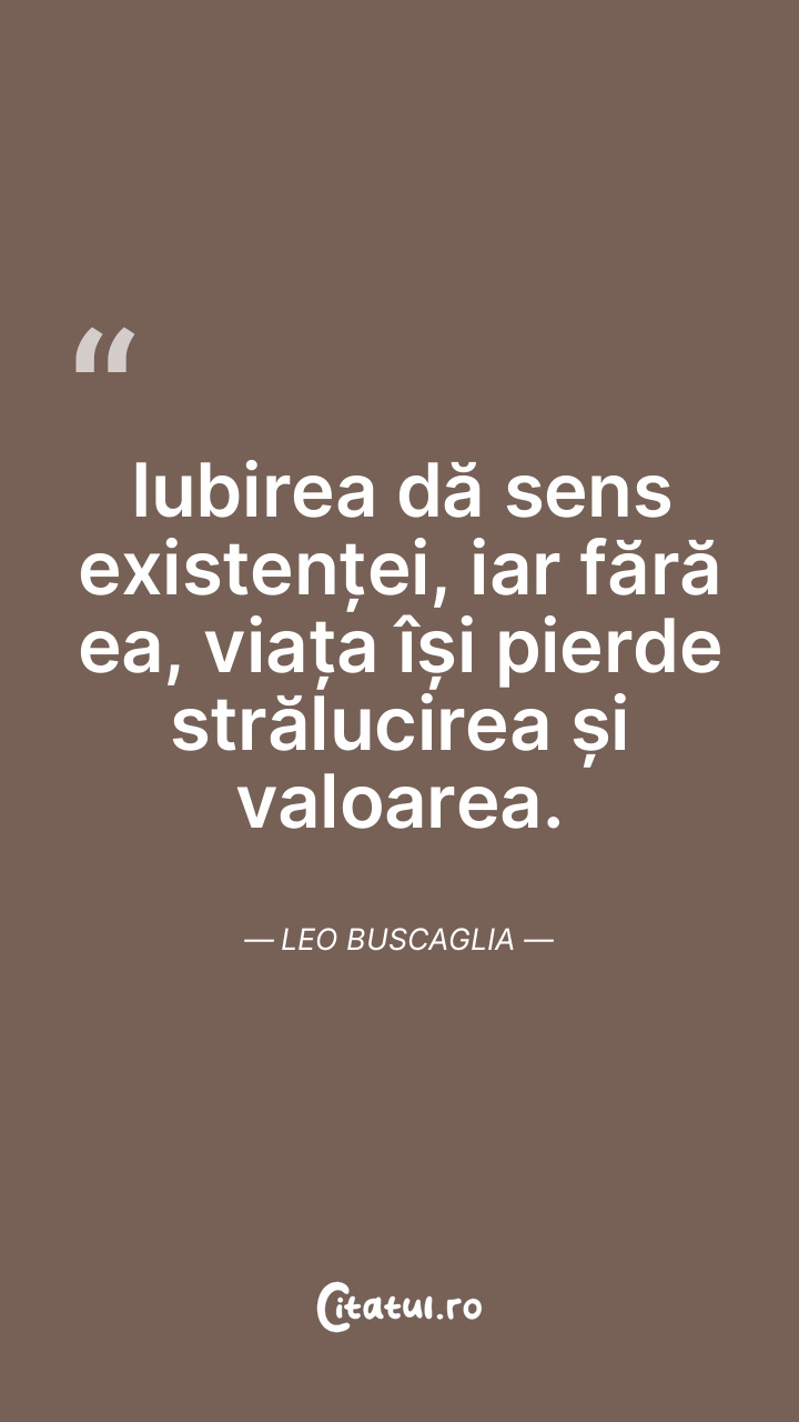 Iubirea dă sens existenței, iar fără ea, viaț ... Citește tot citatul >