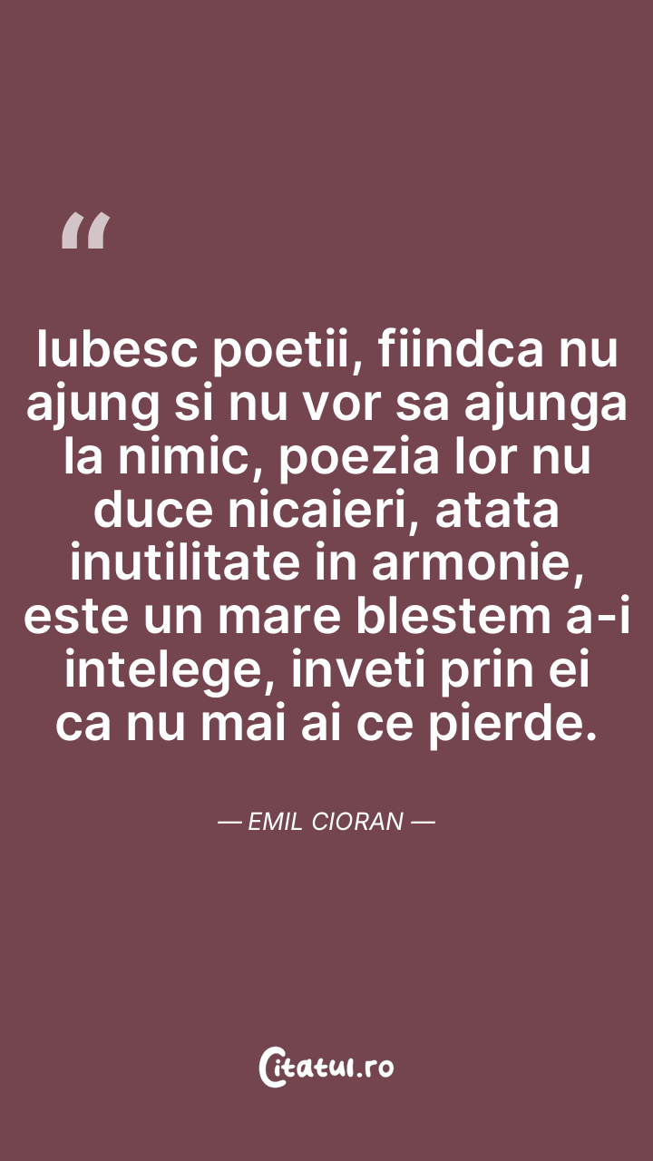 Iubesc poetii, fiindca nu ajung si nu vor sa ... Citește tot citatul >