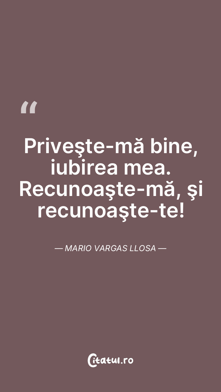 Priveşte-mă bine, iubirea mea. Recunoaşte-mă, ... Citește tot citatul >