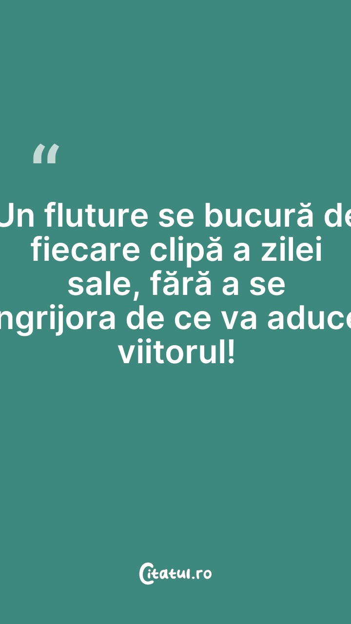 Un fluture se bucură de fiecare clipă a zilei ... Citește tot citatul >