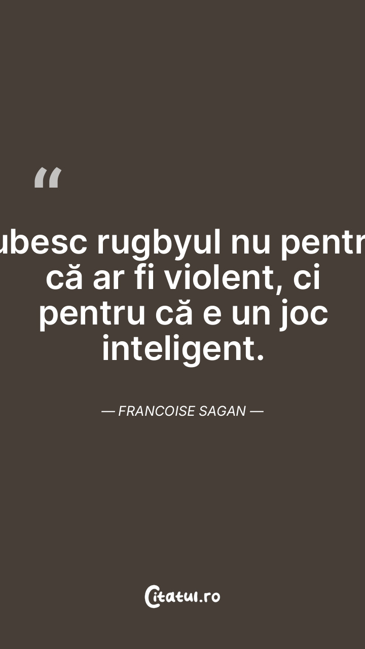 Iubesc rugbyul nu pentru că ar fi violent, ci ... Citește tot citatul >