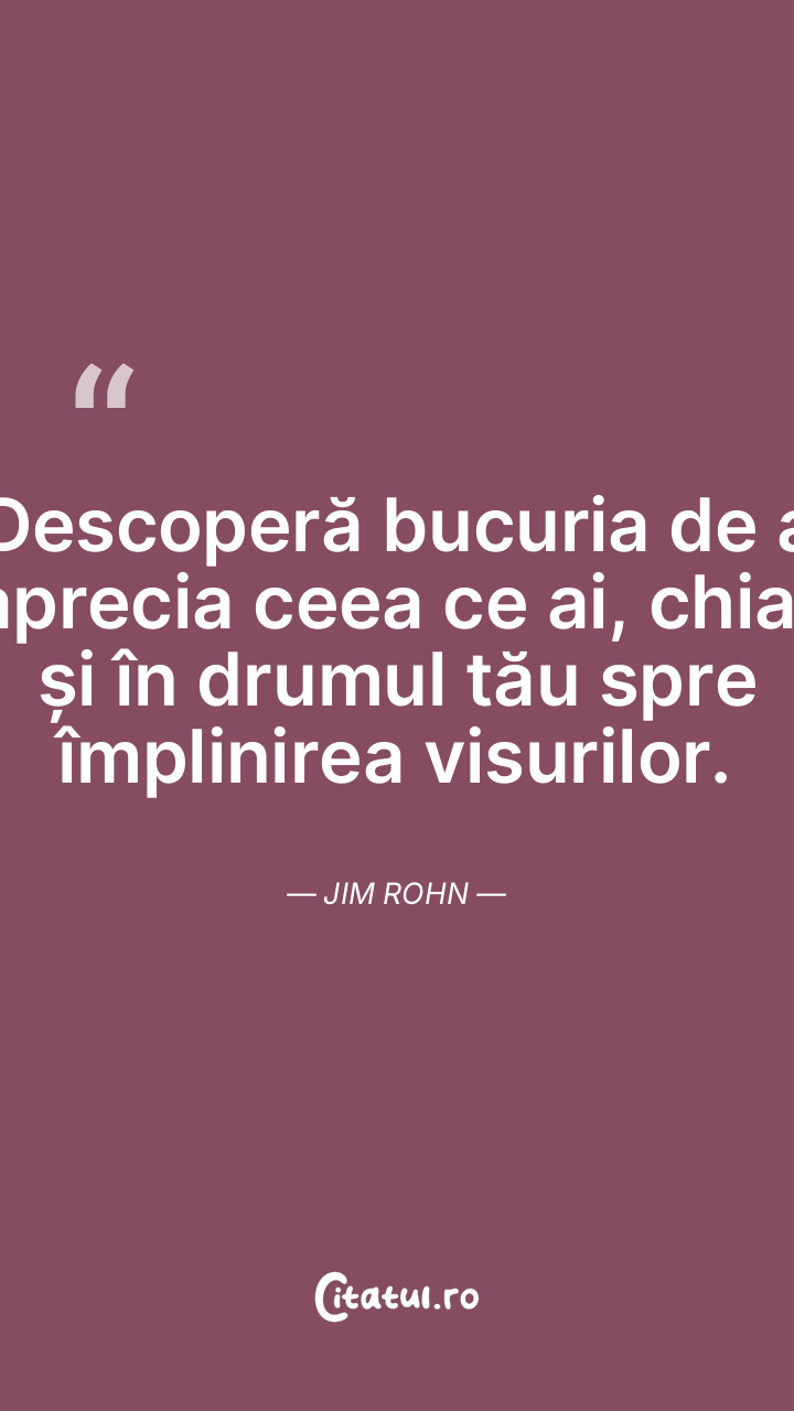 Descoperă bucuria de a aprecia ceea ce ai, ch ... Citește tot citatul >