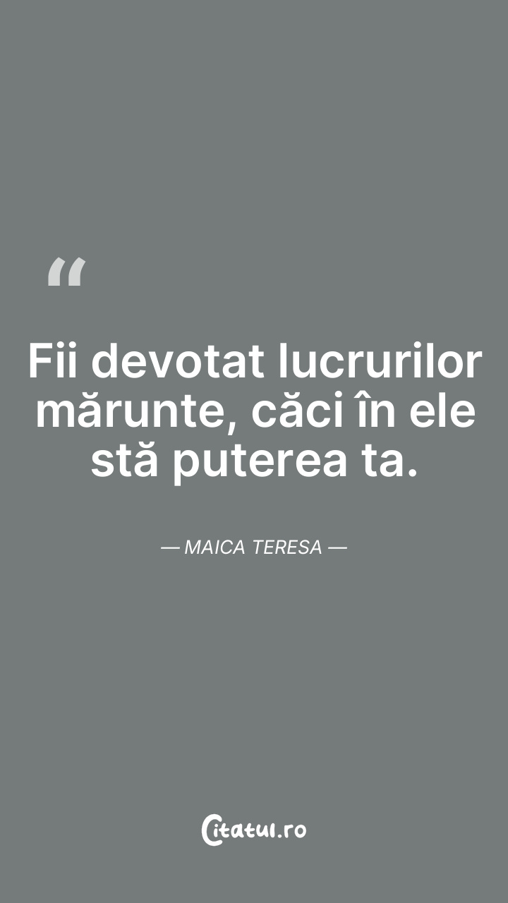 Fii devotat lucrurilor mărunte, căci în ele s ... Citește tot citatul >