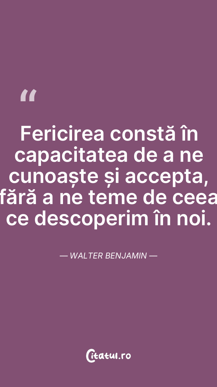 Fericirea constă în capacitatea de a ne cunoa ... Citește tot citatul >