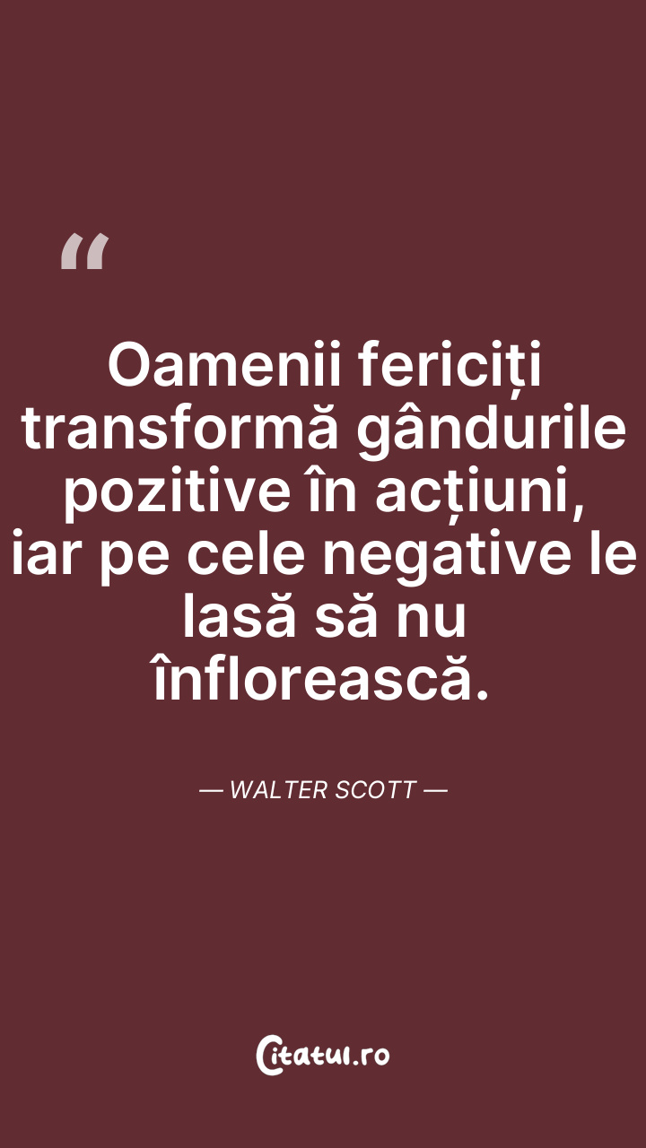 Oamenii fericiți transformă gândurile pozitiv ... Citește tot citatul >